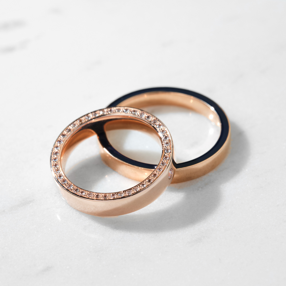 Najlepša ljubavna priča ispisana dijamantima i roze zlatom. Jednostavna forma sa neočekivanim detaljima! U profilu ženske burme skrivaju se dijamanti. Njima otmeno parira crna keramika u muškoj burmi. Posetite nas i pogledajte ovaj neobičan par!