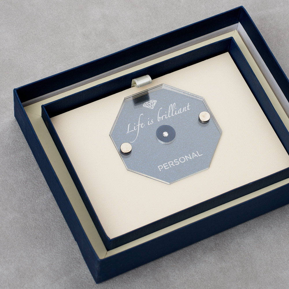 Večni kamen – dijamant zapečaćen u luksuznom pakovanju predstavlja idealan poklon za sve prilike. Osoba kojoj poklonite blister, može da bira da li će svoj dijamant ugraditi u neki komad nakita ili ga čuvati kao uspomenu. U našoj ponudi se nalazi 12 različitih veličina dijamanata. Prikazana cena se odnosi na dijamant težine 0.20ct čistoće SI i G boje.