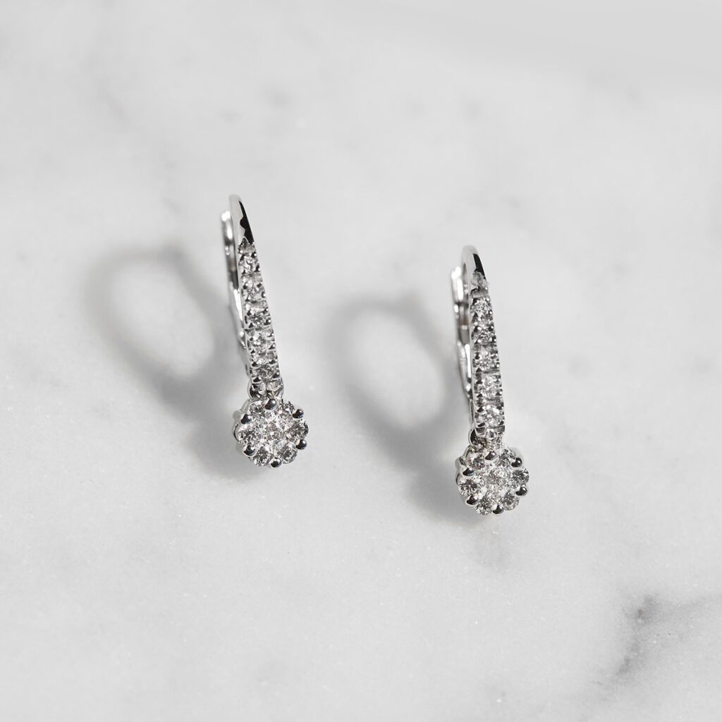 Esencija ljubavi sačuvana u nakitu koji Vam znači. Blago viseće minđuše od belog zlata sa dijamantima 0.30ct VS/G. Savršene za svaki dan i glamurozne noći.