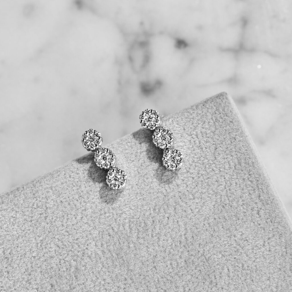 Ekskluzivne luksuzne minđuše od belog zlata, optočene mnoštvom blistavih dijamanata 0.52ct VS/G. Jedinstveni dizajn kod kojeg je mnoštvo dijamanata uklopljeno u jednu celinu posebnom tehnikom invisible setting i izrada visokog kvaliteta su atributi ovih minđuša. Unikatne, upečatljive i vanvremenske minđuše.