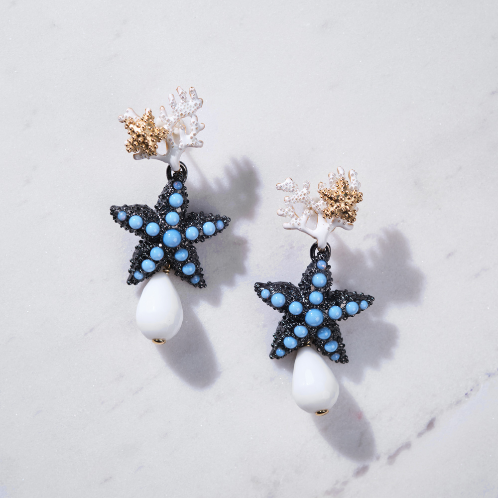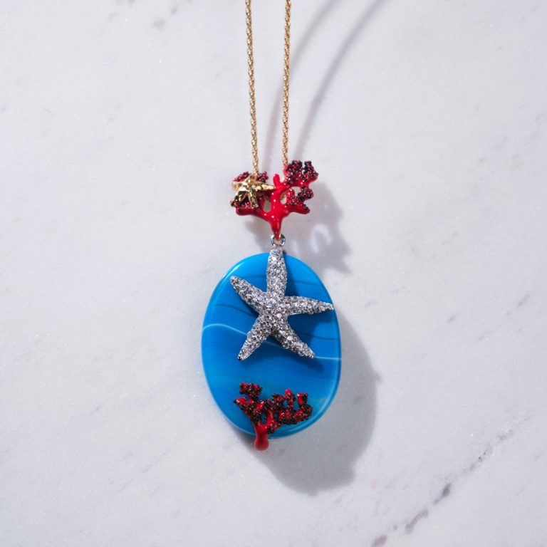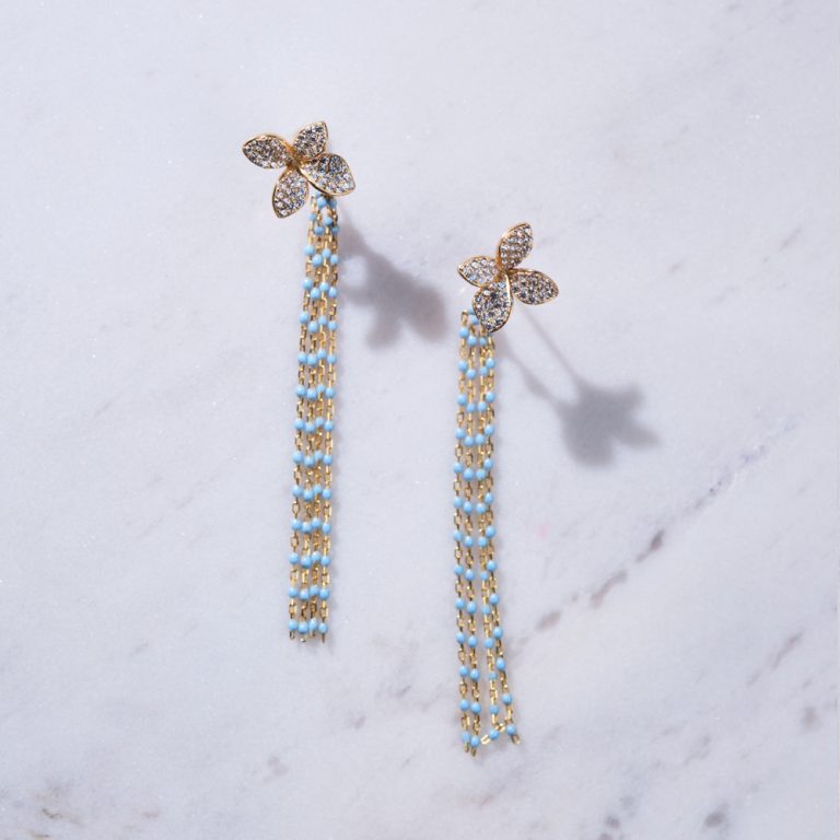 Misterija mora “uhvaćena” u minđušama neobične lepote. Ovi egzotični komadi, izrađeni su od brušenog srebra, oplemenjeni su plavim opalom, belim emajlom i belim ahatom. Zaokružite svoj letnji izgled spektakularnim nakitom!