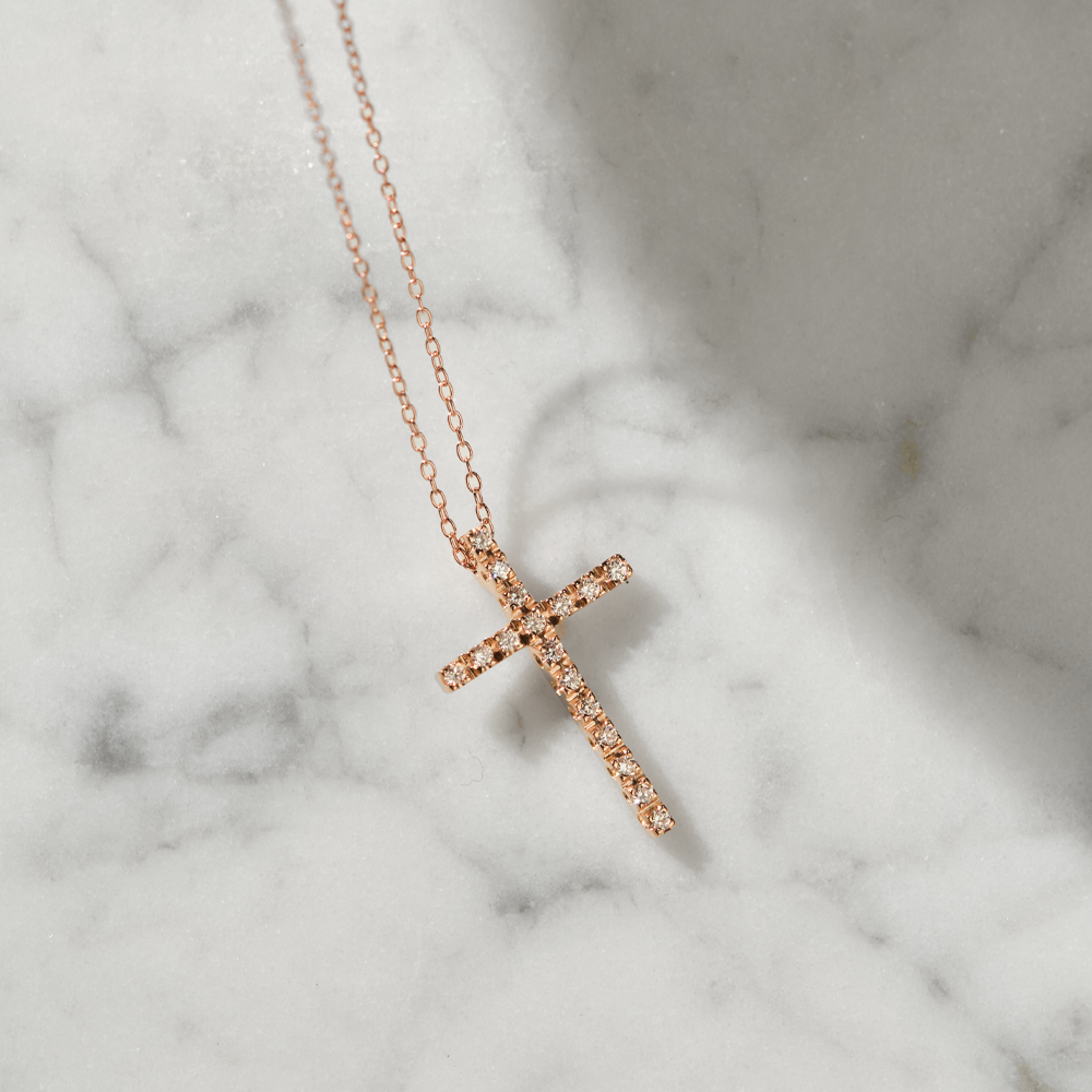 Dijamanti 0.13ct VS/G i žuto zlato daju iznenađujući efekat ogrlici sa krstom, čineći je ne samo verskim simbolom, već i umetničkim delom koje odiše sofisticiranim stilom.