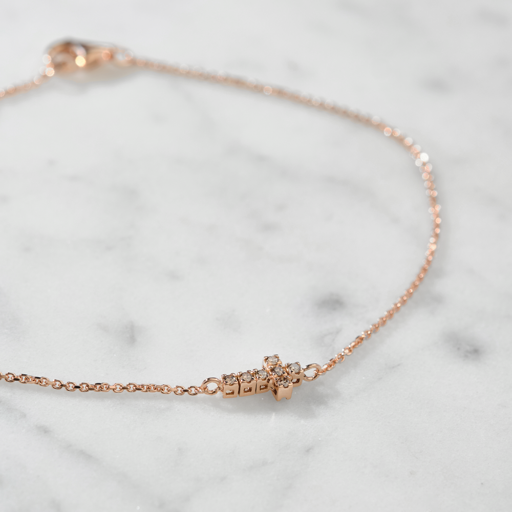 Narukvica od roze zlata sa diskretnim nizom braon dijamanata kreirana je za žene koje biraju sofisticiranost u svakom detalju. Lako se kombinuje, a dovoljno je posebna da sama privuče pažnju.