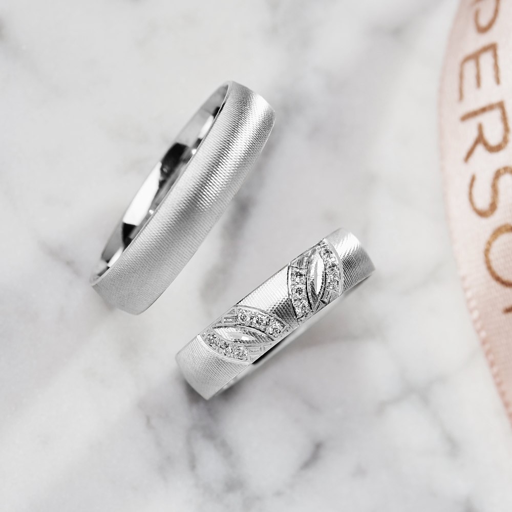 Novi dizajn burmi iz Personalove radionice. Izrađene od belog zlata sa specifičnom strukturom. Muška burma je ukrašena sjajnom gravurom, a ženska nizom cirkona. Na vaš zahtev cirkoni mogu biti zamenjeni dijamantima, uz doplatu. Cena se odnosi na burme u paru sa cirkonima.