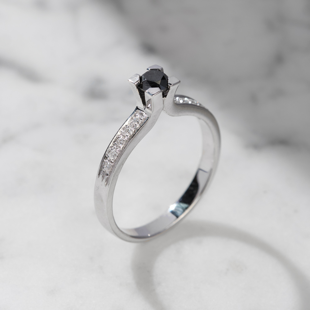 Početna » Shop » Vereničko prstenje » Verenički prsten crni dijamant » Prsten od belog zlata sa crnim dijamantom, 4220