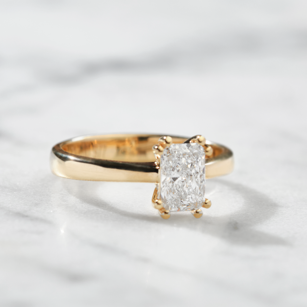 Dizajn čistih linija i radiant dijamant u toplini žutog zlata – za devojke koje biraju luksuz koji govori tiho, a blista snažno, ostavljajući trag elegancije u svakom trenutku.