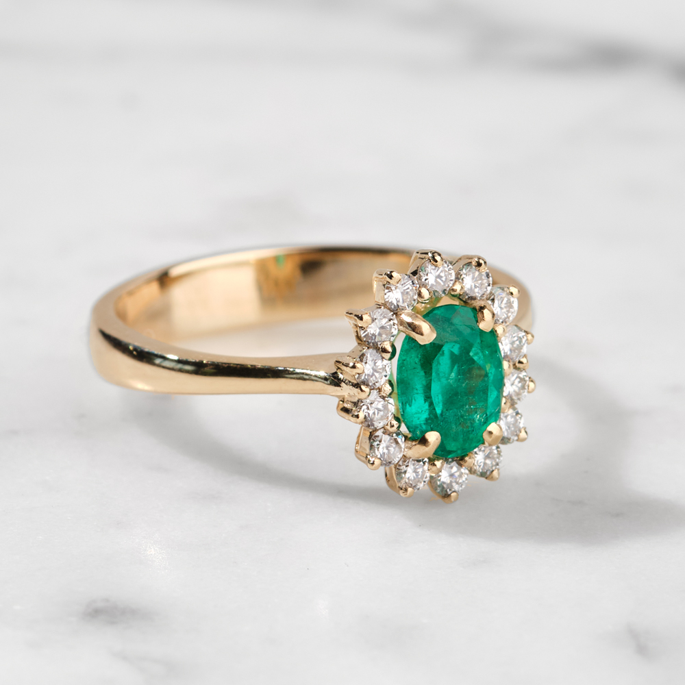 Savršeni niz dijamanata uokviruje prirodni, ovalni smaragd i čeka da bude deo vaših najdražih trenutaka.