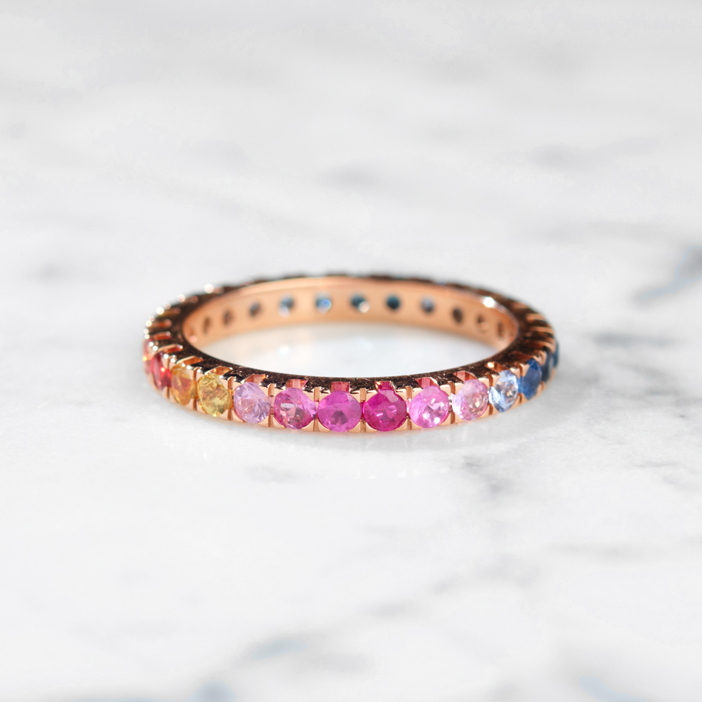 Nesvakidašnji prsten od roze zlata ukrašen je safirima različitih boja 1.43ct.  Za večernje ili dnevne avanture pune glamura i luksuza. Novi prsten iz Personal kolekcije izrađen je od roze zlata i raznobojnih safira.