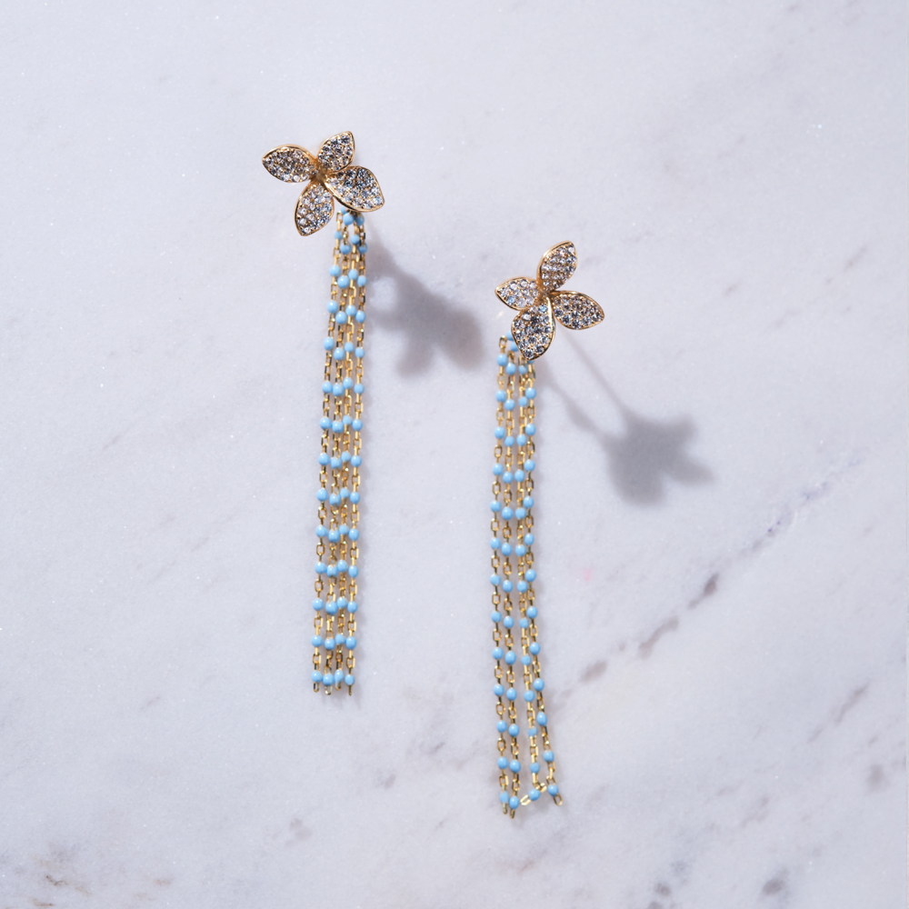 Sunce u kosi i savršene boho minđuše! Izrađene su od srebra a oplemenje pozlatom, cirkonima i azurnim emajlom.