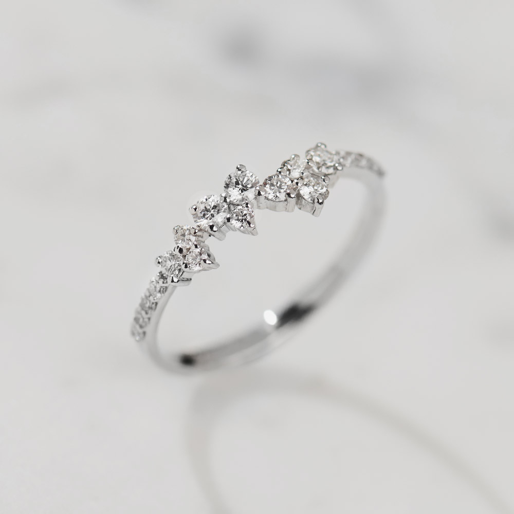 Dijamantska rapsodija! Više manjih dijamanata 0.33ct VS/G i belog zlata čine kompoziciju ovog vereničkog prstena. Unikatan i efektan prsten preporuka je za najhrabrije dame. Dostupan samo u zlatari Personal.